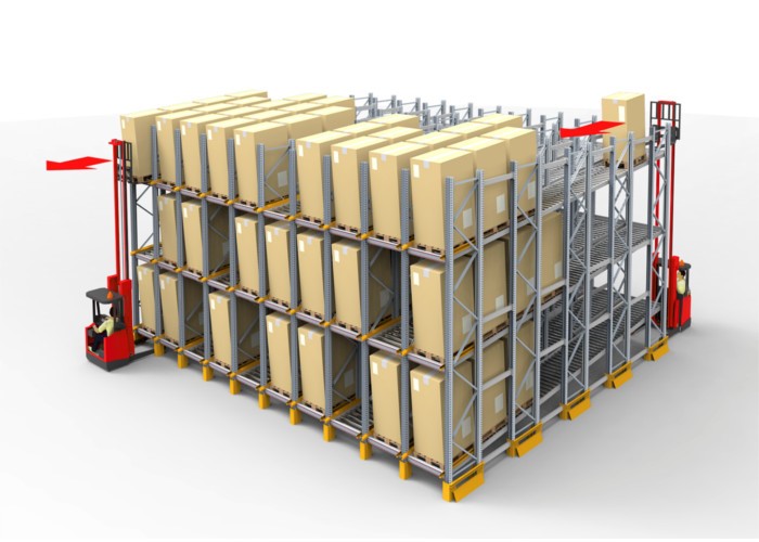 Scaffalature per picking manuale: scaffalatura a gravità corsie di scorrimento a rulli Bi-Bloc